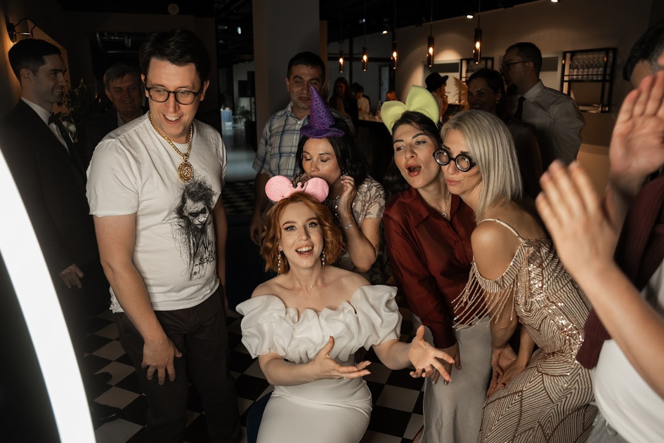 Фотобудка становится эпицентром веселья. Это не пассивный уголок для фото, а настоящее интерактивное развлечение.